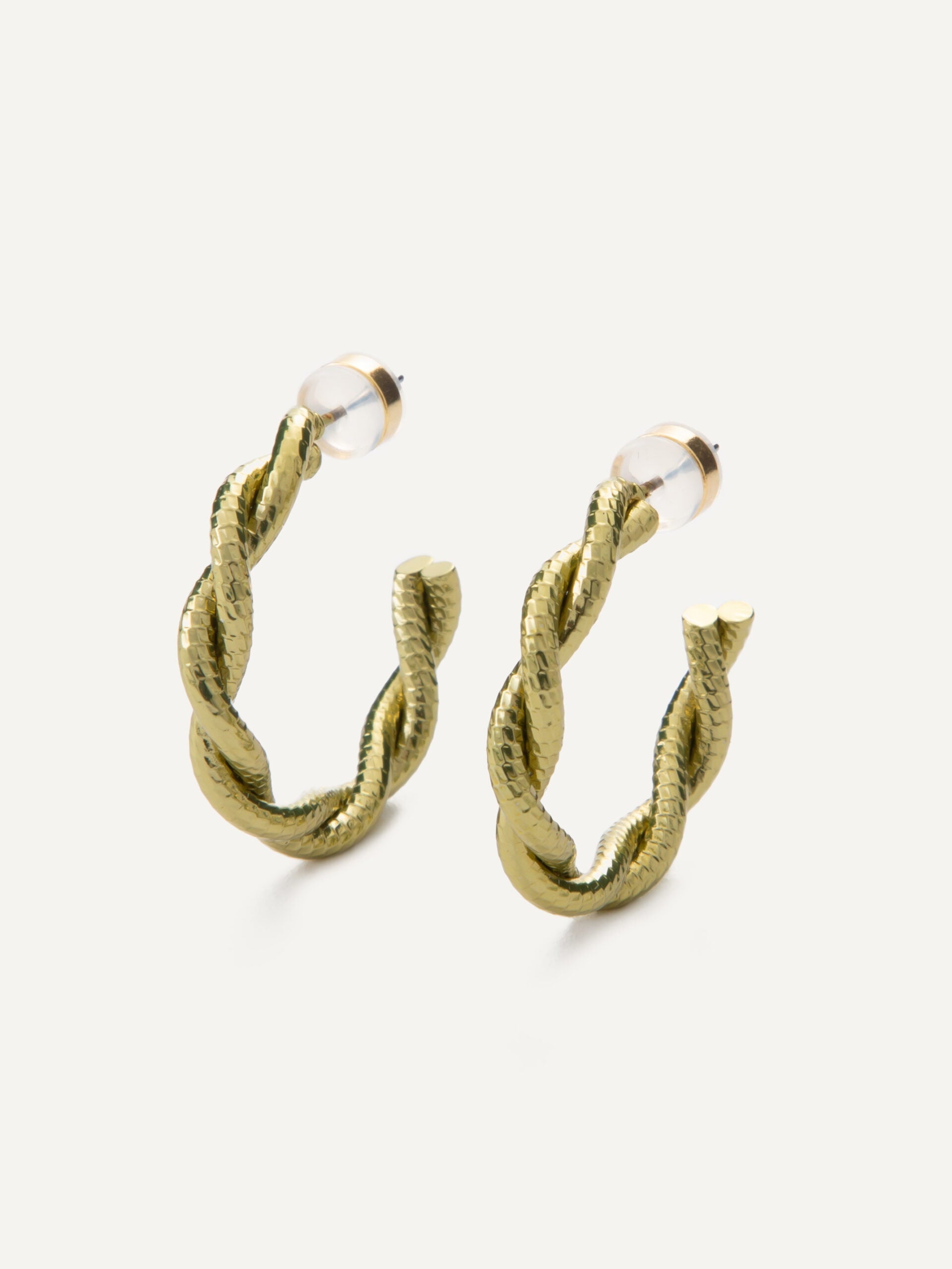 Twisted rope textured earring hoops.