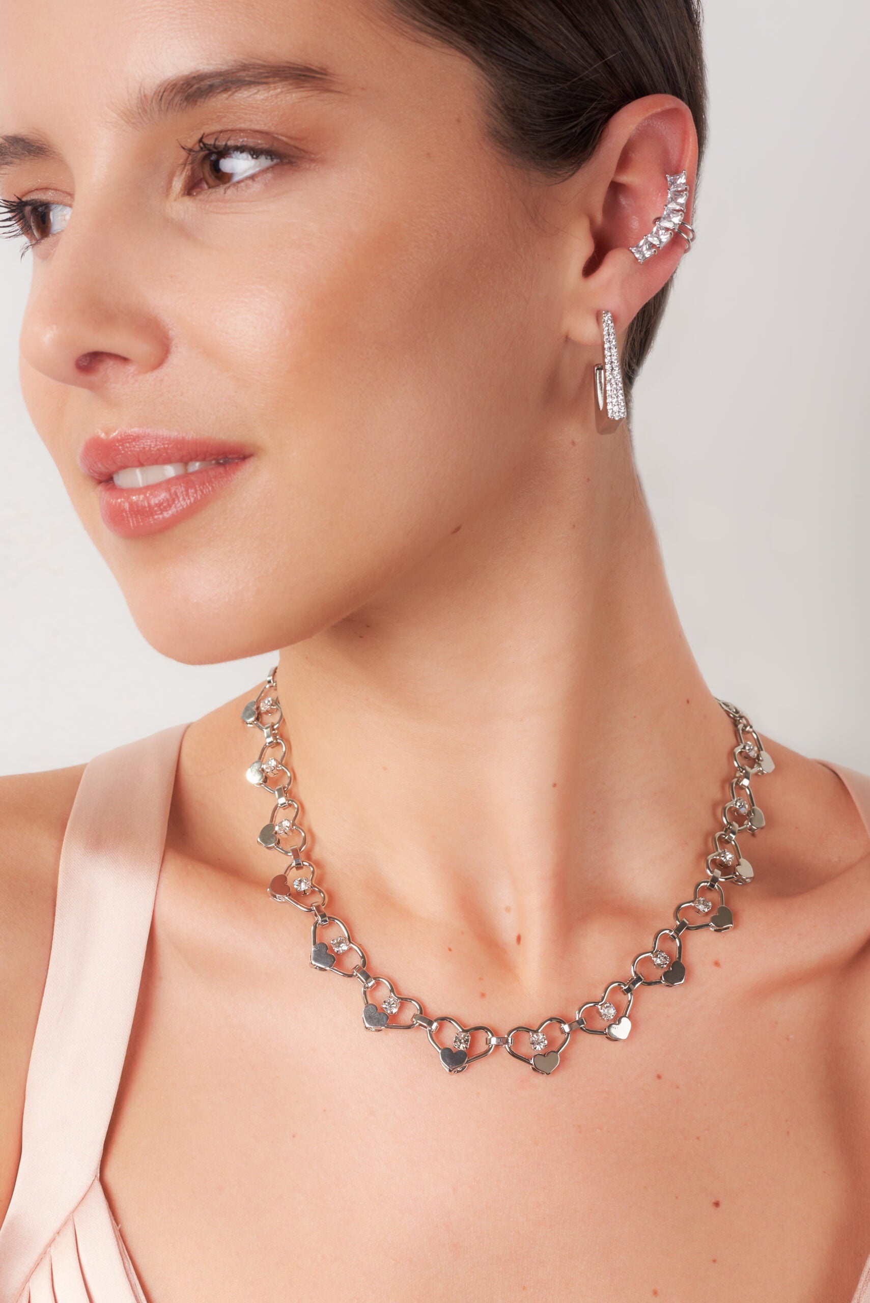 Heart-shaped chain necklace with crystal details