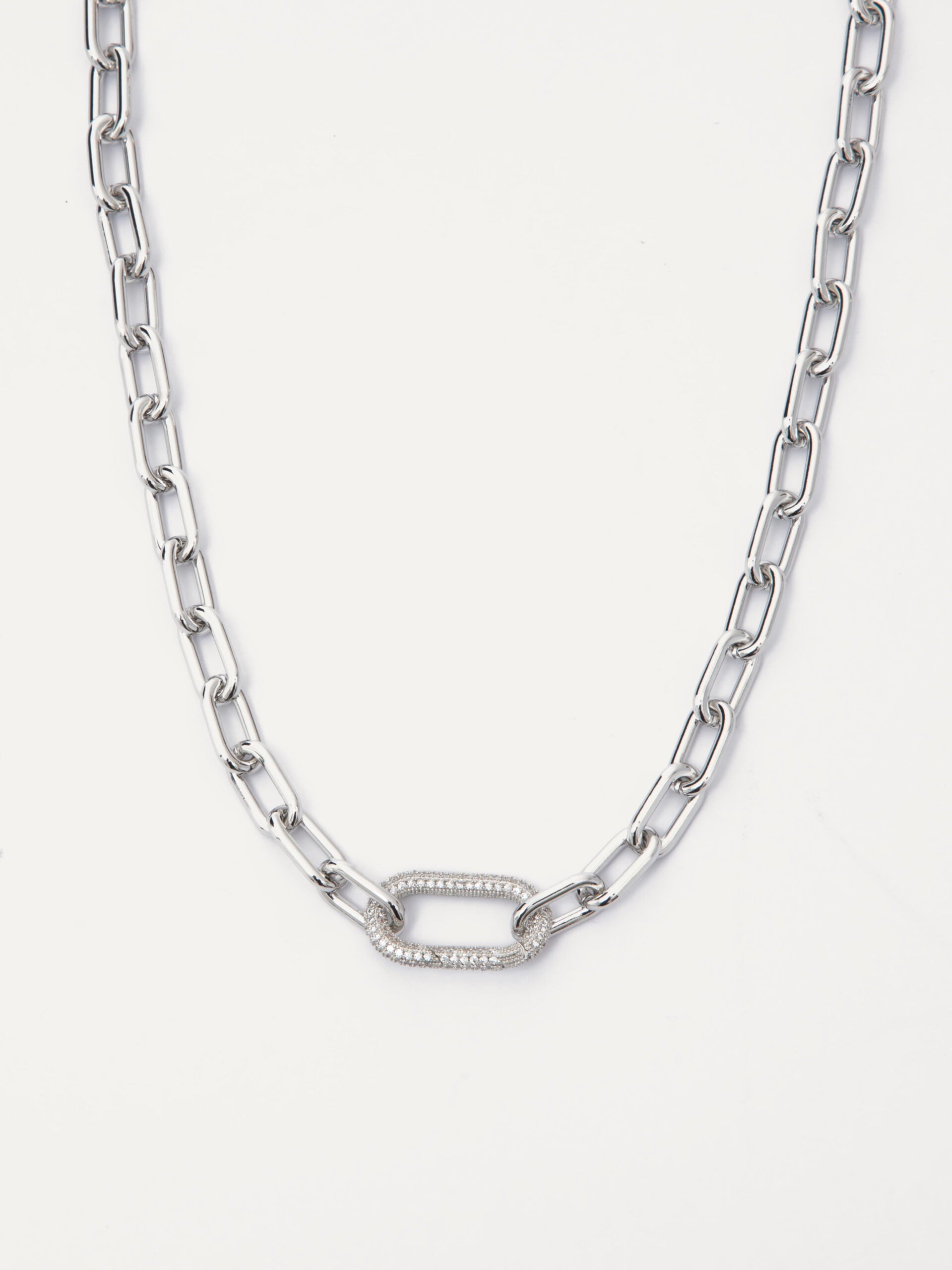 Oval link chain with front cubic zirconia crystals connector.
