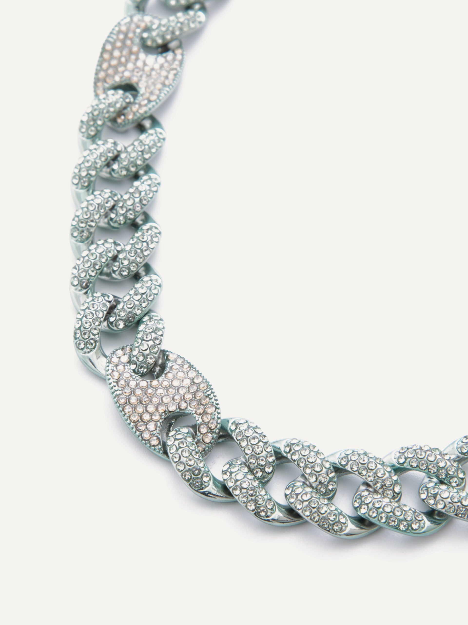 Crystal curb link chain bracelet with mariner link connectors.