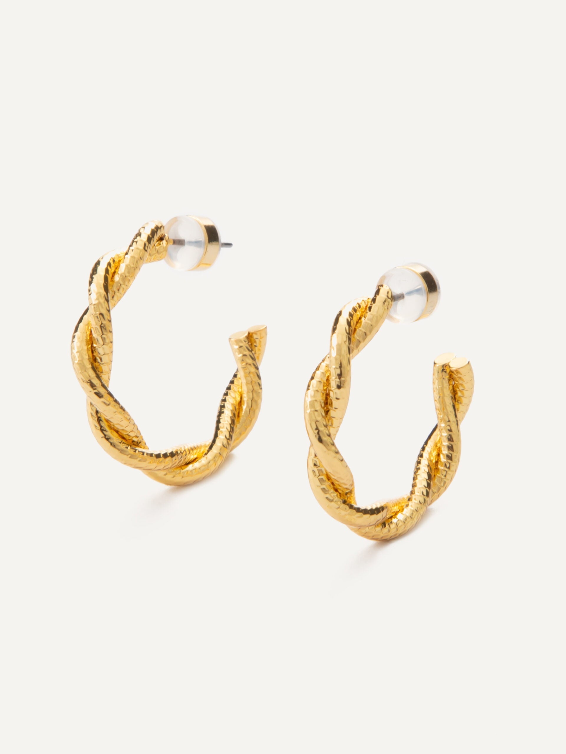 Twisted rope textured earring hoops.